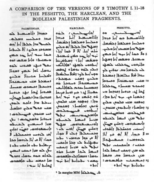 Aramean kielisiä uusia testamentteja on kolme, kansainvälisesti tunnetut nimillä "western", "eastern" ja "harklean", joista Harklean on kreikasta käännetty, samoin kuin toinen noista, mutta "eastern" ei ole missään tapauksessa kreikasta käännetty. Ainakin Murdock ja Etheridge käyttävät kreikasta käännettyä pohjatekstiä. Lamsan teksti on kyllä eastern, mutta valitettavasti tekstiin ei ole syvennytty asiaan kuuluvalla huolella (kirjoittaa Andrew Roth, sekä useat saamani palautteet, itse en ole kyseisiä käännöksiä lukenut yhtään). Hieronymus mainitsee 300-luvulla, että Paavali kirjoitti arameaksi, ja Luukas huolella käänsi kreikaksi. Tästä maininnasta ilmeisesti tietämättä (koska hän ei siitä mitään mainitse), G.H.Gwilliam julkaisi kirjassaan "Anecdota Oxoniensia .. five more fragments" (Clarendon Press, 1893) tutkielman, verraten näitä kolmea kirjoitusta Paavalin kirjeestä Timoteukselle, toisiinsa, ja huolella perustellen, ettei yksi näistä voi olla kreikasta käännetty. Esimerkissään Gwilliam käyttää normaalia estrangela-kirjoitusta, mutta teksti on helpompi lukea ja ymmärtää, kun kirjaimet muuttaa tavalliseen ashuri-formaattiin. Estrangela-kirjoituksella on valmistettu ainakin J.Magiera interlinear, sekä hänen tekemänsä "Word Study Concordance" (Light of the Word Ministry, 2005), joka on itsellenikin ollut aivan korvaamaton kirja käännöstöissä ja raamattutuntien valmisteluissa. Teksti on kuitenkin sama, olipa se kummalla kirjaimistolla tahansa. Esimerkkisivu Gwilliamin teoksesta;